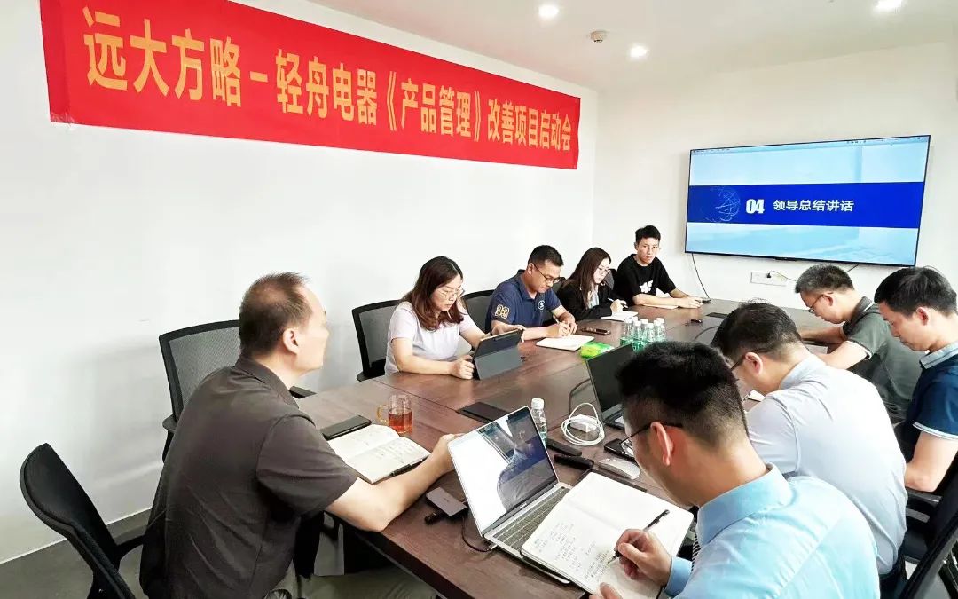 會議上,項目組老師首先向輕舟電器對遠(yuǎn)大方略的信任表示感謝,針對此次項目改善,項目組為企業(yè)制定了專項的改善計劃,會議上對項目計劃進(jìn)行了講解。同時會議上老師強(qiáng)調(diào),產(chǎn)品管理需要形成方法論,將作業(yè)要點(diǎn)形成指導(dǎo)書,同時保持一定的靈活度,建立敏捷產(chǎn)品管理體系,快速響應(yīng)市場變化,提升企業(yè)競爭力。老師有豐富的實戰(zhàn)經(jīng)驗和科學(xué)的方法,但是項目的順利推進(jìn)也需要大家的共同參與,希望大家積極配合老師的工作,共創(chuàng)輕舟電器美好明天。