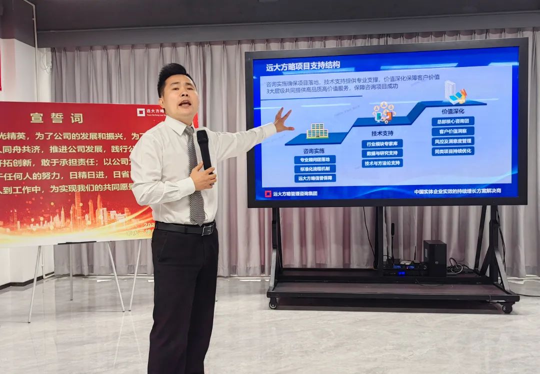 啟動會上,項目組老師首先向三雄極光對遠大方略的信任與支持表示感謝,隨后老師分析了目前的市場環境,表示市場內卷加速,想要在市場競爭中持續保持競爭優勢,企業需要練內功,全面開啟降本增效,推動企業高質量發展。