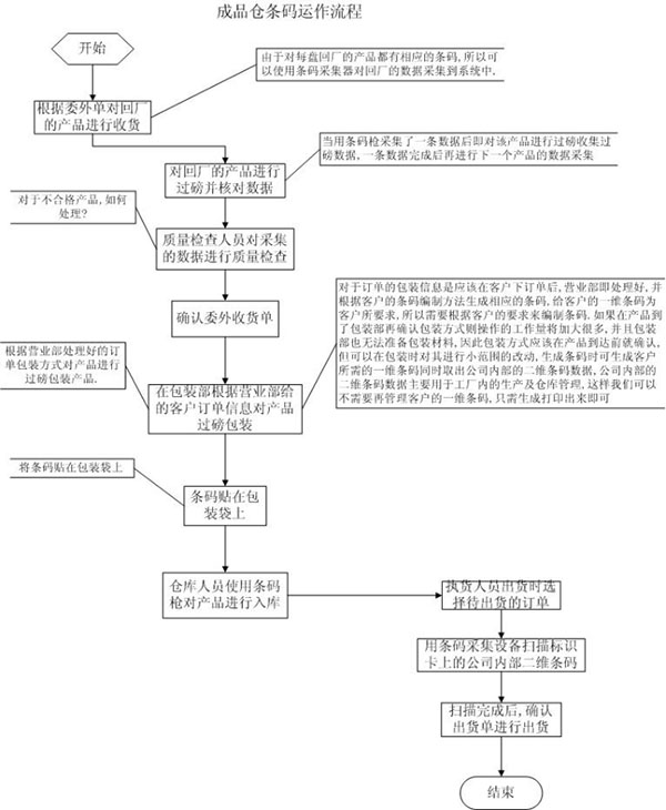 1) 當委外收貨的半成品送至包裝部后,包裝部根據營業部的出貨計劃,按訂單包裝方式(內包裝含商品數)對產品進行過磅包裝。