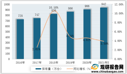 2016-2021年工程機(jī)械主要設(shè)備保有量、增速及預(yù)測