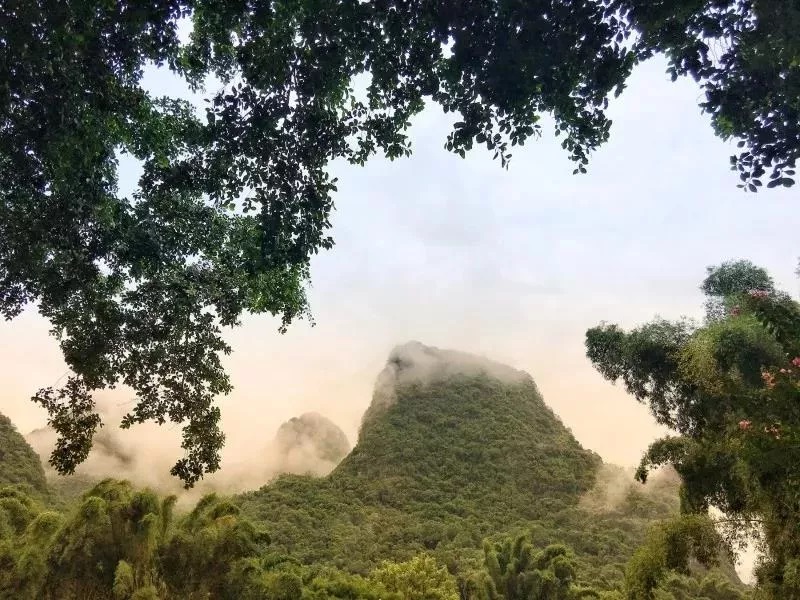 7:40AM興坪古鎮的美景,一座座山與山間環繞的霧氣朦朦朧朧的詩意畫境是桂林的特色。